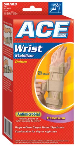 | 7 of 7 people found the following review helpful By Amazon Verified Purchase This review is from: ACE Deluxe Wrist Stabilizer, Large/X-Large, Left (Health and Beauty) This is the best wrist brace I have found so far. I lived with carpal tunnel for 9 years and finally got the surgery 3 years ago. Since then my wrist problems are just about fixed. However, once in a while, when I use them excessively, my hands still give me problems. I will slip these on at night and I don't have to worry about my hands falling asleep. Keeps me from having to wake up and shake the pins and needles out. I've used many braces in the past but these are by far the most comfortable. They have a small profile but big enough to support your wrist. The are easy to get on and off and don't cut my circulation off. They have a plastic strip that supports and keeps your wrist straight. I don't need these much anymore. But once in a while I get them out to give me some relief. I would buy these again. Very inexpensive and well worth it! 4 of 4 people found the following review helpful By Amazon Verified Purchase This review is from: ACE Deluxe Wrist Stabilizer, Large/X-Large, Right (Health and Beauty) I must admit when I ordered the wrist stabilizers at such an incredible price I was not sure what I would receive. These stabilizers are better quality than the ones I've paid $16 to $23 dollars for at other places. I am a very satisfied customer. 6 of 7 people found the following review helpful By Amazon Verified Purchase This review is from: ACE Deluxe Wrist Stabilizer, Small/Medium, Right (Health and Beauty) as a recovering parallyzed stroke patient this wrist brace significally added tosupporting my rehabilitation efforts to recover use of my right arm/hand |
