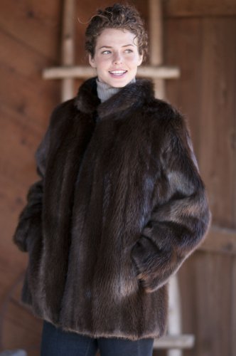 Women's Olivia Longhaired Beaver Fur Coat with Fox Fur Trim, HAZEL CRYSTAL, Size LARGE(18) Reviews